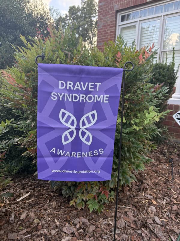 Help to raise awareness by proudly displaying the DSF yard flag that speaks volumes. Each flag carries the bold message: “Dravet Syndrome Awareness” – a tribute to the families, children, and individuals fighting this rare and catastrophic form of epilepsy. By purchasing and displaying your flag, you’re joining a growing movement to shed light on this lesser-known condition and advocate for change!